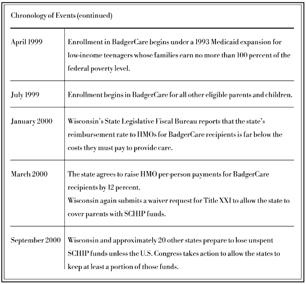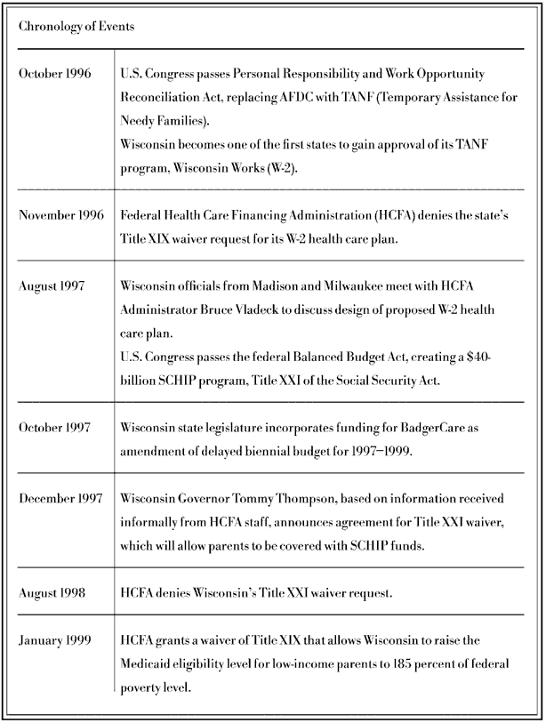 This report describes how leaders in Wisconsin developed and implemented BadgerCare. Because the program uses both state and federal funds, Wisconsin officials and their counterparts in the federal Health Care Financing Administration had intense discussions about the interpretation of federal law and regulation. To their credit, they reached sufficient consensus to enable the program to go forward.