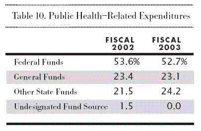 Direct Public Health: The 20002001 report did not include Indian Health Services expenditures. The 20022003 report includes these expenditures.