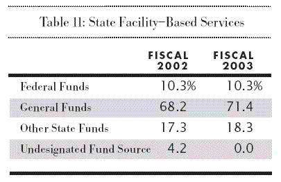 Other State Facilities: Although both years have institution costs reported in both Medicaid totals and other state facilities expenditures, the 2000–2001 report has far more costs reported in Medicaid totals. State fiscal year 2000–2001 was contained in the 19992001 biennium, which had 85.5 million MUPL (Medicaid) financing in OMHAS institutions. This portion of the institution costs would have been reported in Medicaid totals and not other state facilities expenditures. In the 20012003 biennium, MUPL financing ended for these institutions. There are still Medicaid costs being reported in Medicaid totals, but only for the geriatric and children populations.