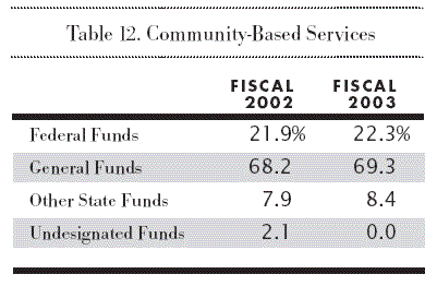 Community-Based Services: Includes expenditures for the Department of Rehabilitation Services, the J.D. McCarty Center, and community-based mental health and substance abuse services for the Department of Mental Health and Substance Abuse Services.