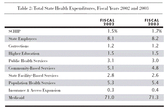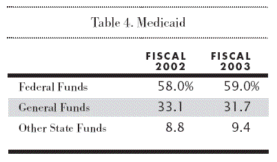 Medical Portion of Workers’ Compensation: For fiscal 2002 and fiscal 2003, these figures represent all state spending on workers’ compensation. A breakdown of just the medical portion of these costs was not available.