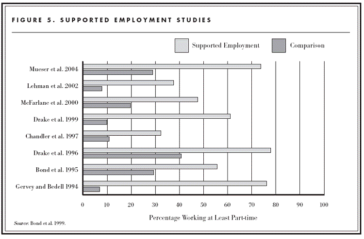 Bond, G., R.E. Drake, D. Becker, and K. Mueser. 1999. Effectiveness of Psychiatric Rehabilitation Approaches for Employment of People with Severe Mental Illness. Journal of Disability Policy Studies 10:1852.