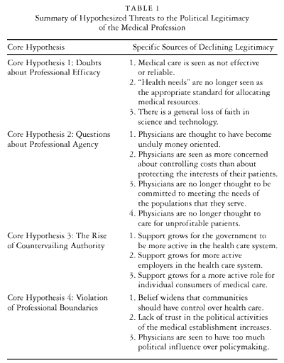 A Loss of Faith: The Sources of Reduced Political Legitimacy for the American Medical Profession