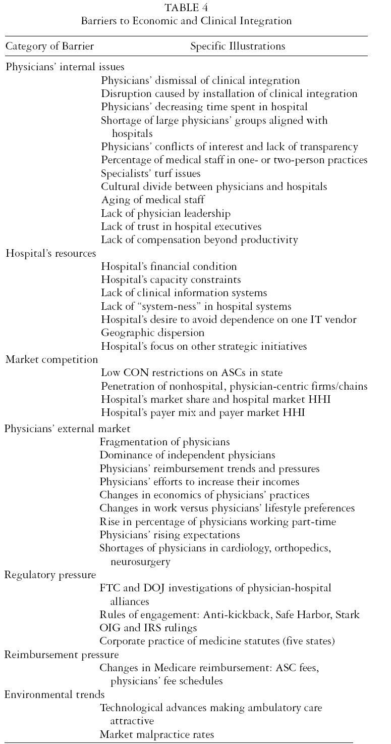 Hospital-Physician Collaboration: Landscape of Economic Integration and Impact on Clinical Integration