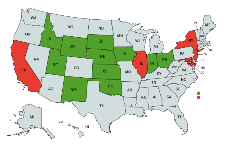 Source: JAMA. 2018;319(14):1444-1472. Note: States highlighted in red gained ten or more spots. States highlighted in green lost ten or more spots.