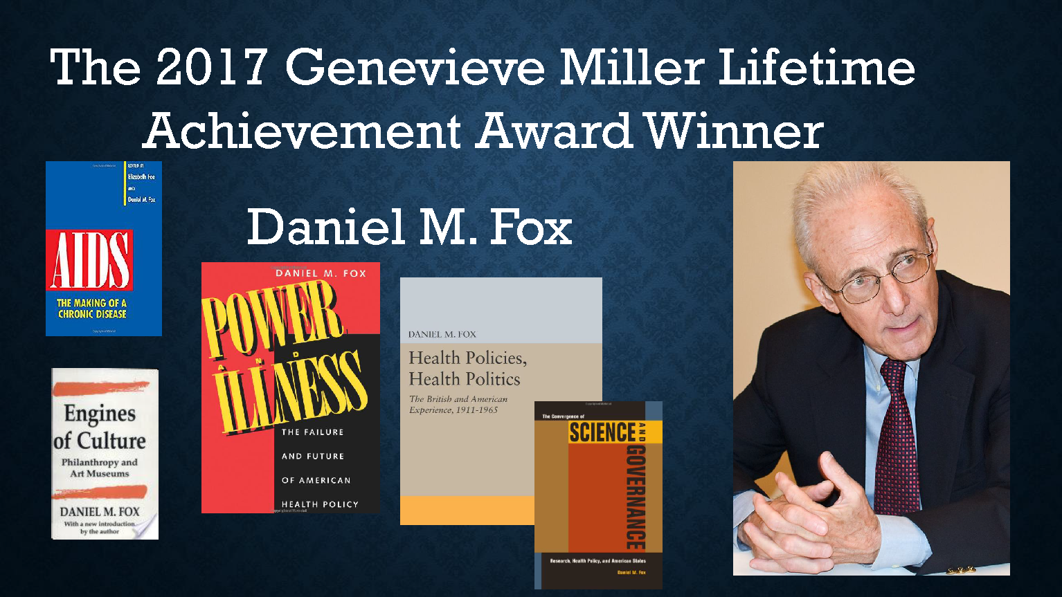Dan Fox, president emeritus of the Milbank Memorial Fund, received the Genevieve Miller Lifetime Achievement Award from the American Association for the History of Medicine in early May.